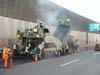 二層同時舗設式アスファルトフィニッシャは、2種類の混合物を貯蔵するための2つのホッパで、それぞれ敷きならすための2つのスクリードを装備したアスファルトフィニッシャです。1回の施工で2種類の混合物を上下層に分けて敷きならし、締固めて仕上げることができます。