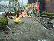 ゴムブロック舗装は、ゴムブロックを使用した弾性舗装であり、透水機能を有することから水たまりができにくく、歩行者が安心して歩行できる舗装です。