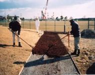 木質系舗装は、木チップや樹皮などと各種バインダ(ウレタン樹脂、エポキシ樹脂、アクリル樹脂、アスファルト系乳剤等)とを現地で混練りした後、敷きならし、締固める舗装で、木材の風合いと弾力性があります。