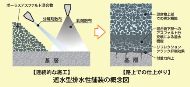 ポーラスアスファルト舗装は、走行安全性や環境保全の観点から非常に付加価値の高い舗装技術です。しかし、ポーラスアスファルト舗装(排水性舗装)では雨水等が浸透するため、下地となる基層面から、舗装が早期に破壊することがあります。この対策として、排水性舗装を用いる補修工事では、下層(基層)を含めた二層の補修をする等の対策が講じられています。