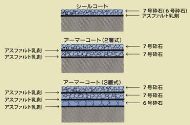 チップシールは,アスファルト乳剤と骨材を単層あるいは複層に仕上げる散布式表面処理であり,舗装の延命に寄与する予防的維持の一工法です。アスファルト乳剤と骨材を単層に仕上げる場合をシールコート、複層に仕上げる場合をアーマーコートと呼ばれることがあります。シールコートかアーマーコートかは路面の状態や交通の状況により使い分けられます。