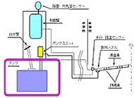 融雪剤散布システムは、センサー制御によって液状の凍結防止剤を路面に散布するシステムで、散布箇所からさらに走行する車輪によって凍結防止剤を拡散し、広い範囲で路面の凍結を防止します。 凍結防止剤散布車と比較して出動準備や稼働時間によるタイムロスがなく、必要時に自動的に散布することができるため、管理の高度化、省力化が図れます。